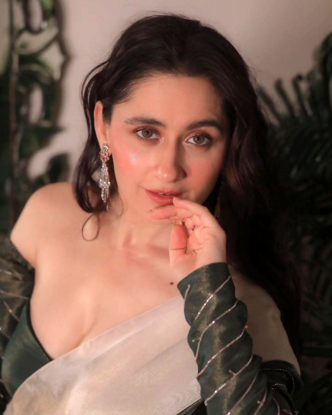 In this photo we can see her wearing a beautiful khaki and green saree, she wore it with a full sleeve green blouse .