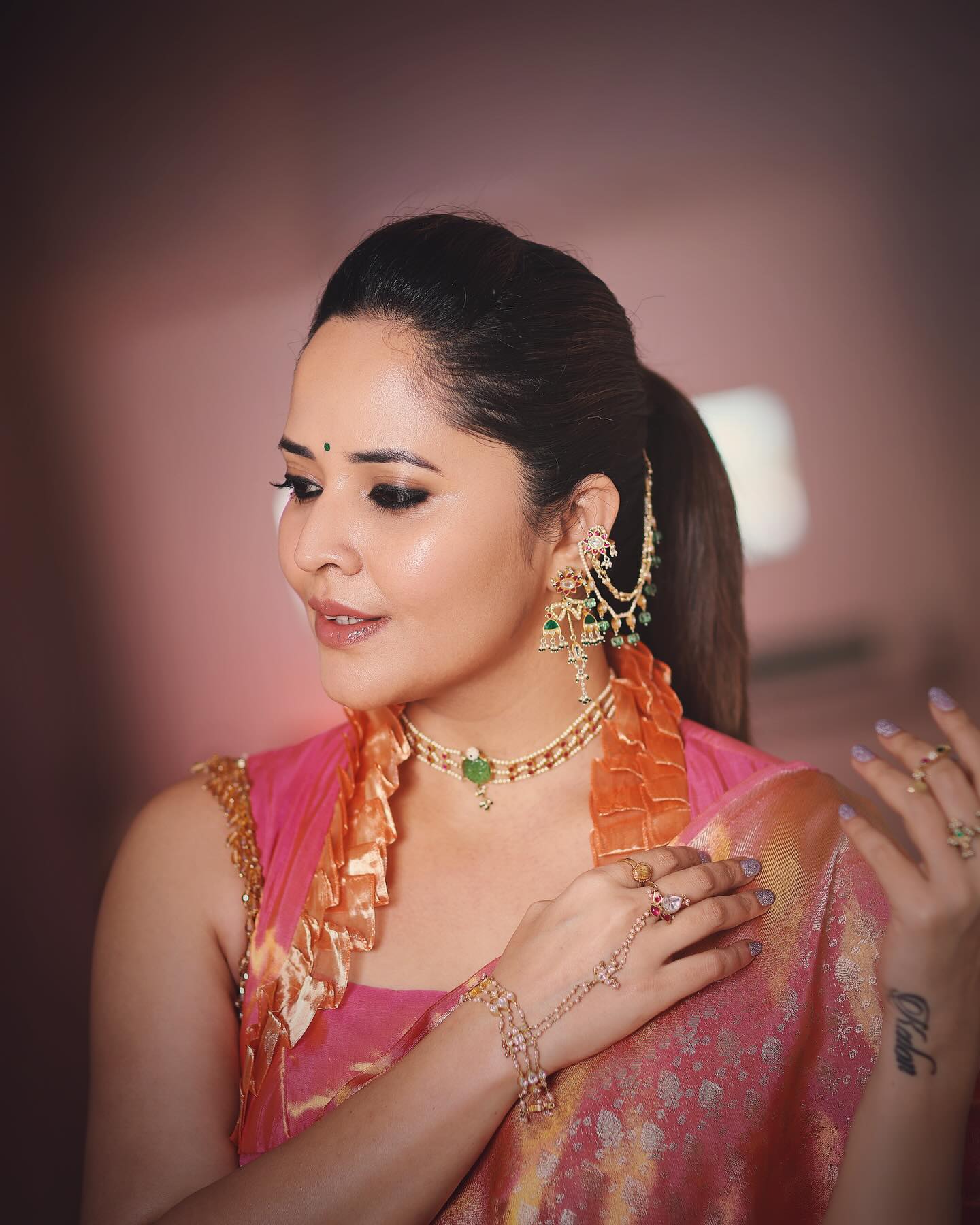 Pink Silk Saree Enhances Anasuya’s Elegance