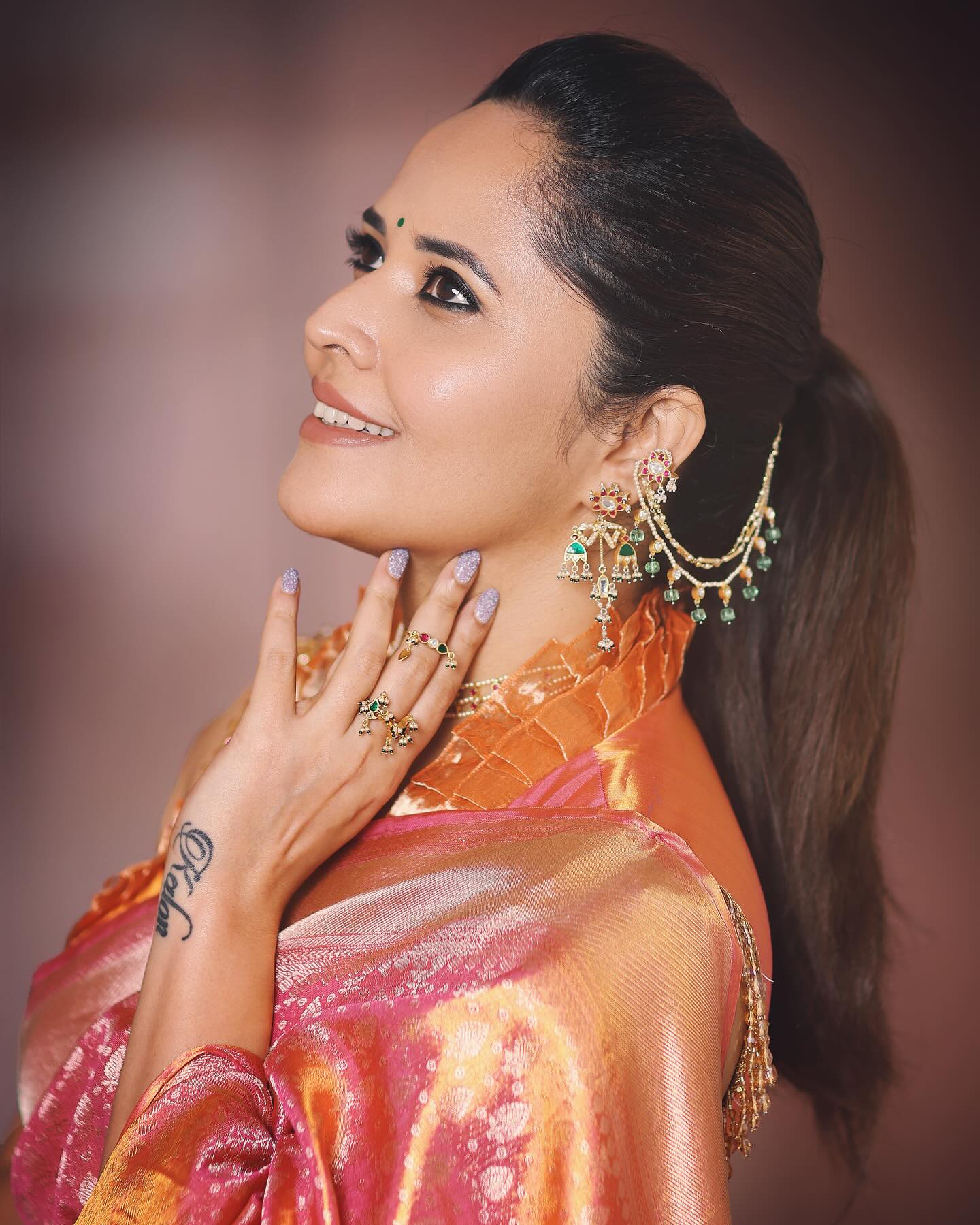 Pink Silk Saree Enhances Anasuya’s Elegance