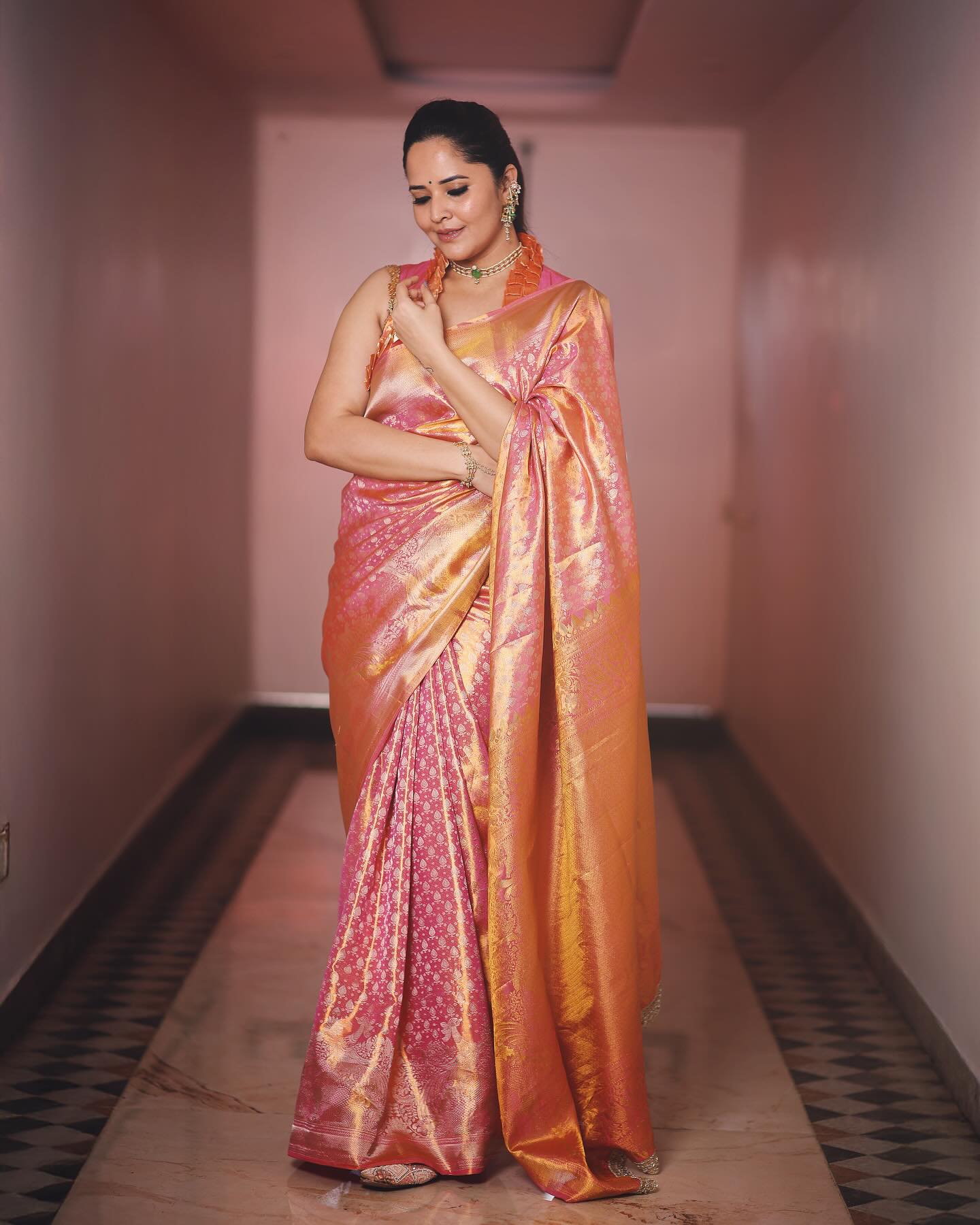 Pink Silk Saree Enhances Anasuya’s Elegance