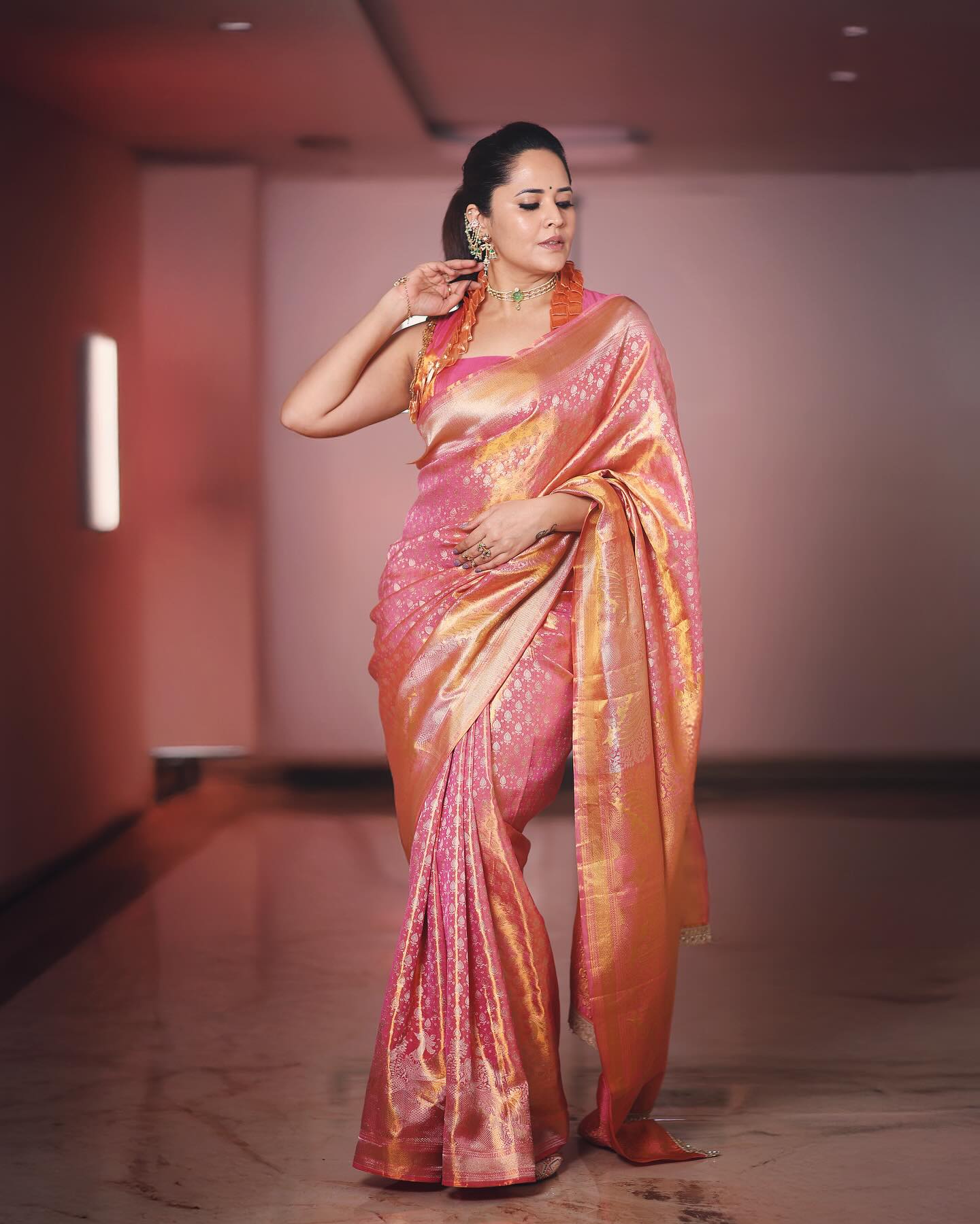 Pink Silk Saree Enhances Anasuya’s Elegance