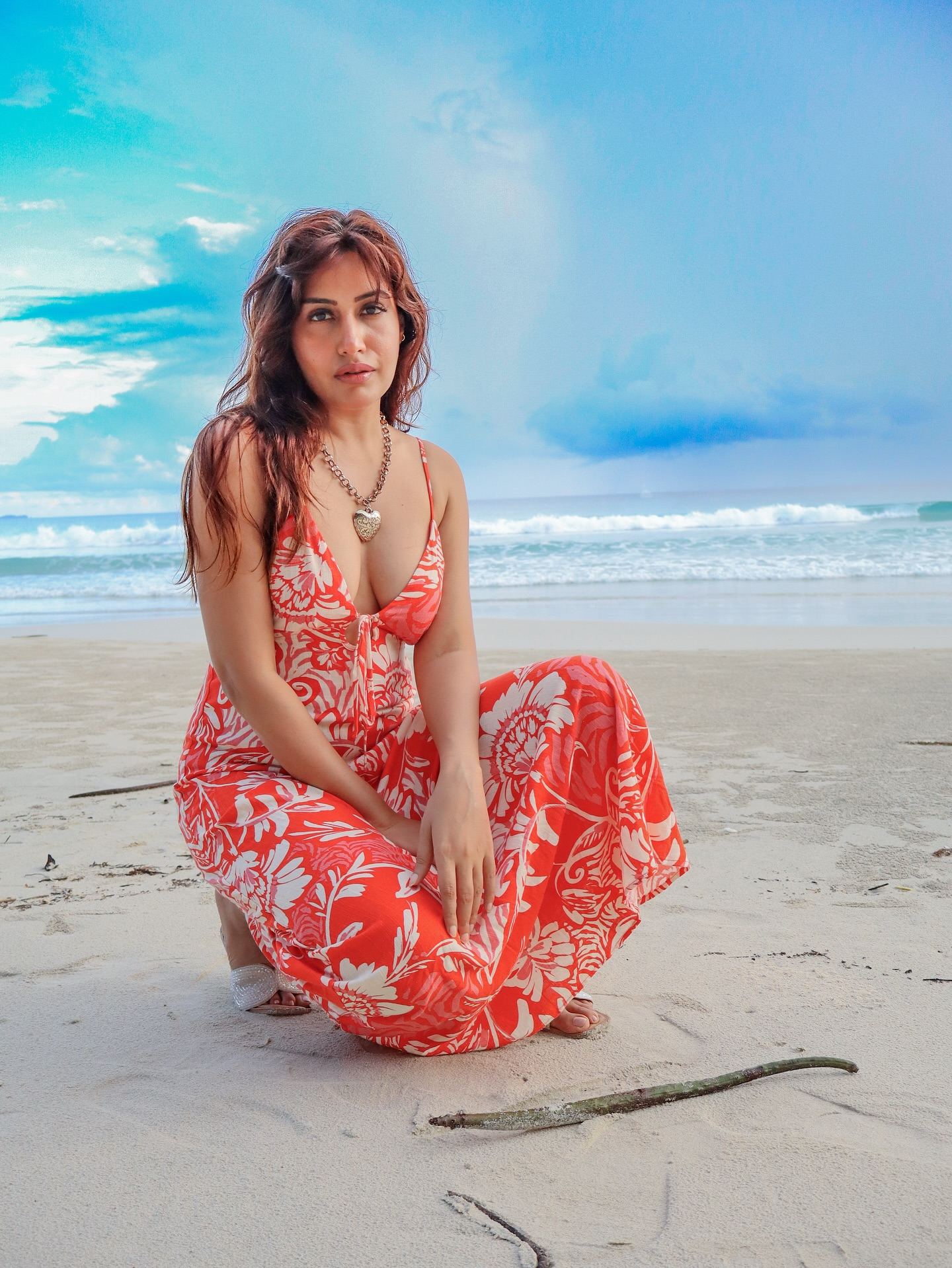 Beach Bombshell Surbhi in a Fiery Red Look