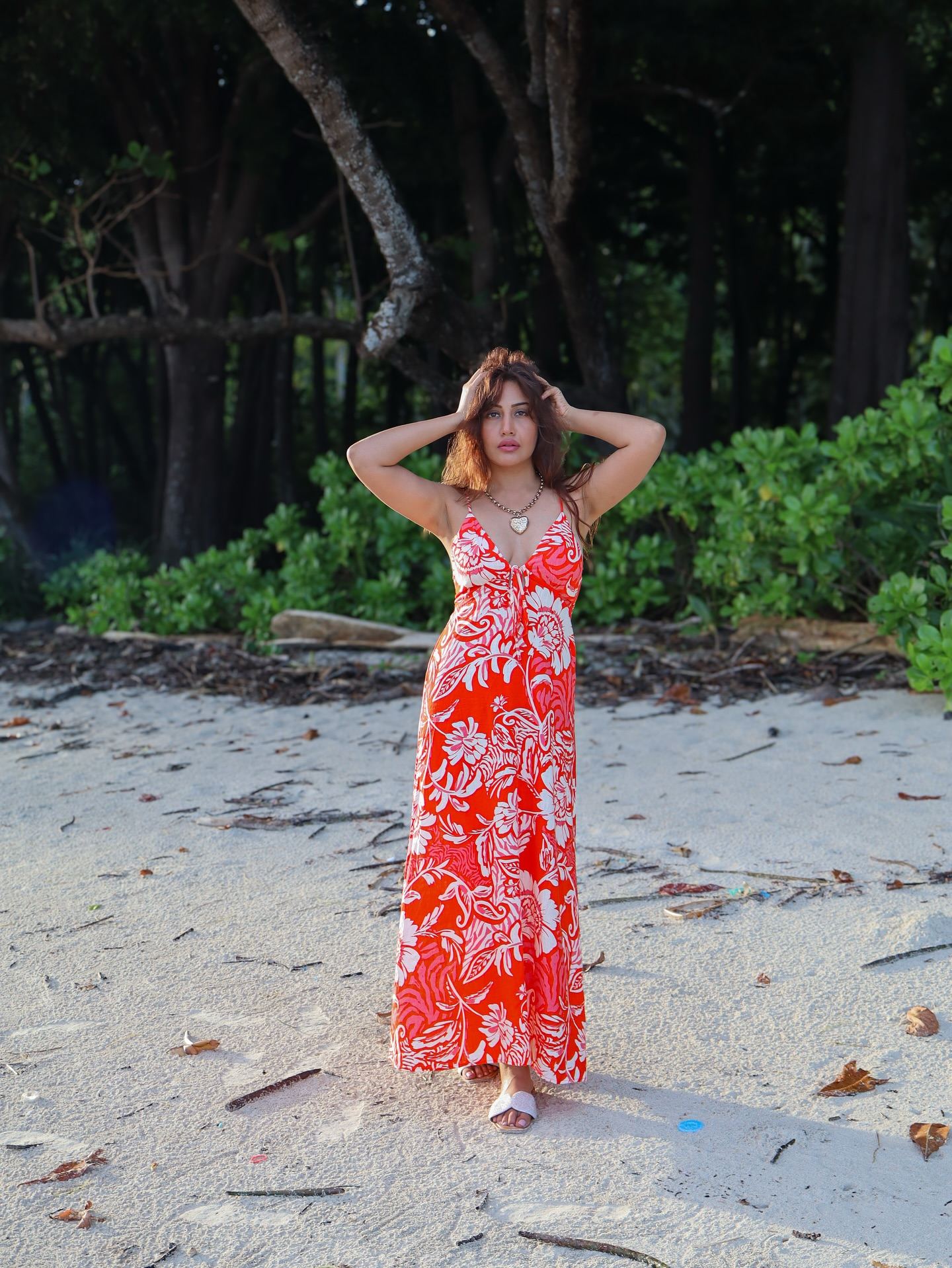 Surbhi Chandna Slays in a Red Floral Dress | See Beach Pics