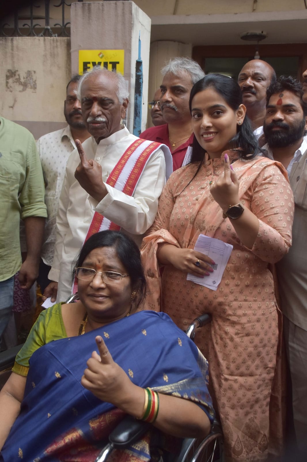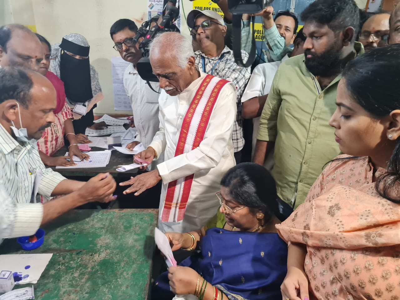Governor of Haryana Bandaru Dattatraya along with family cast his vote at JV High School, Ram Nagar, Hyderabad