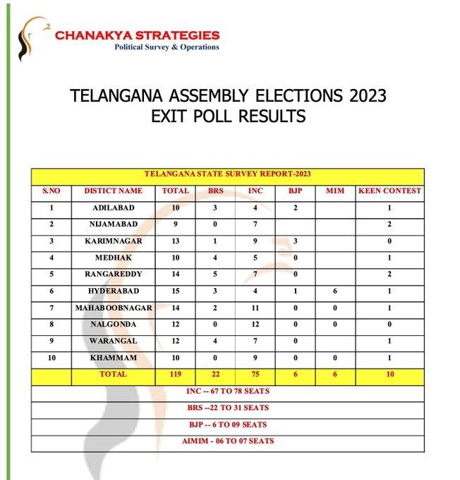 Chanakya Strategies Exit Poll of Telangana: