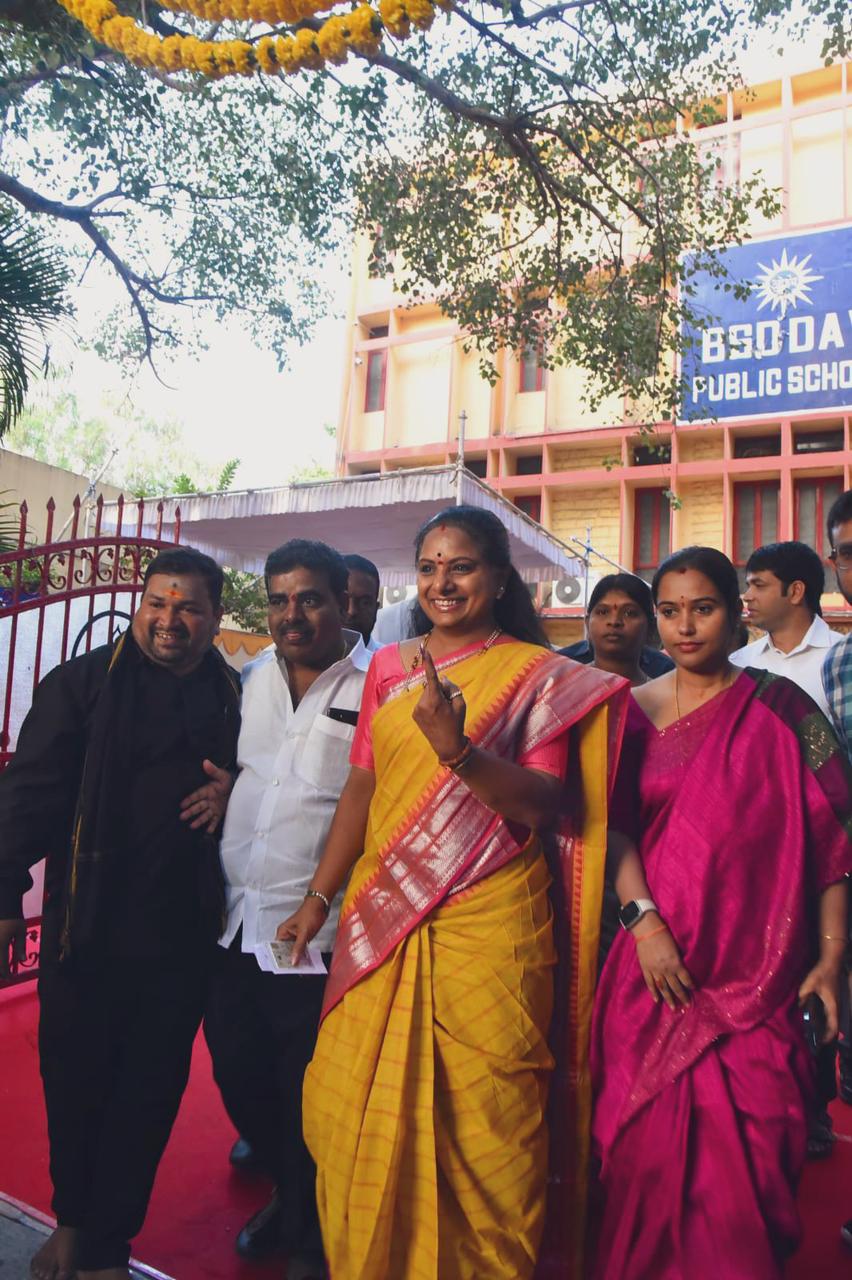 It’s an anxious day for every politician today. Kavitha cast her vote at Dav Public School, Banjara Hills.